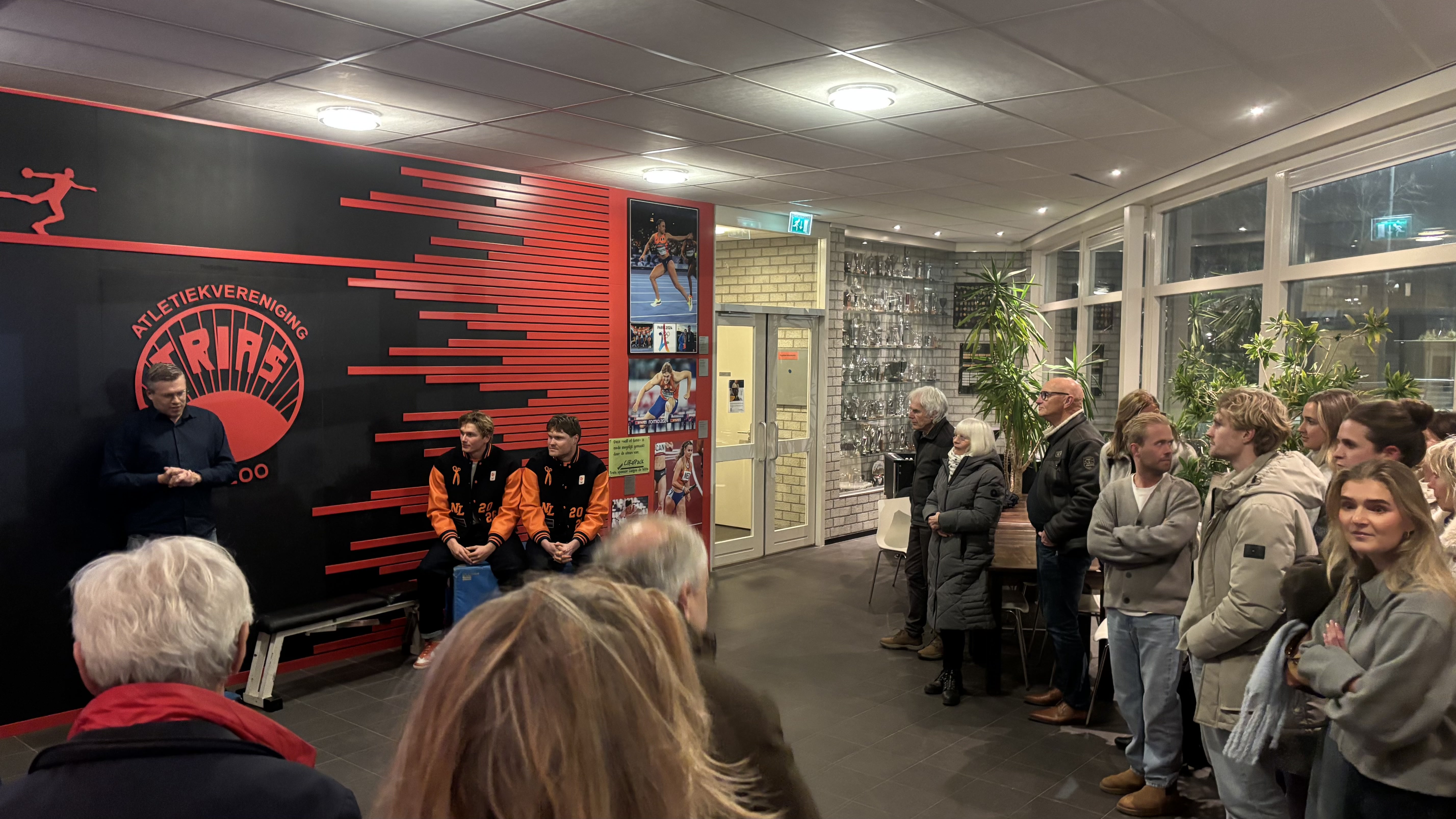 HEILOO - Dave Wesselink (26) en Timme Koster (23) zijn afgelopen zondag uitgezwaaid voor hun vertrek naar de Olympische Spelen in Noord-Italië. De bobsleeërs namen afscheid bij Atletiekvereniging Trias samen met een dertigtal supporters, familie, vrienden en pers.