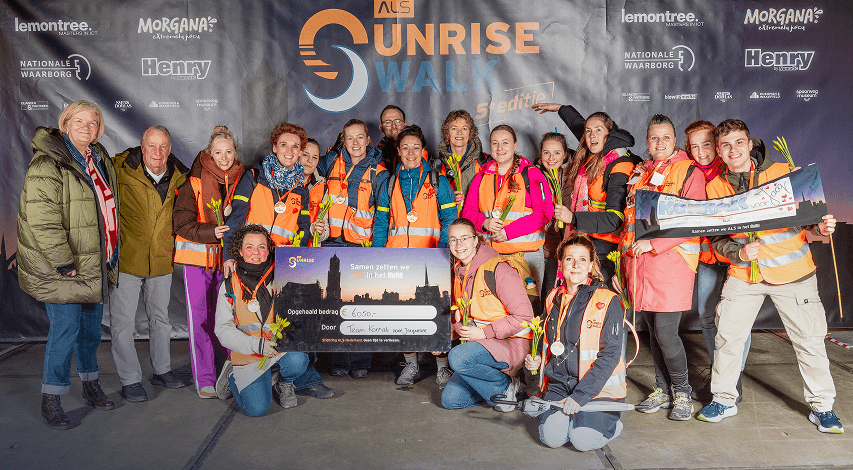 Bij de ALS Sunrise Walk lopen mensen een route van vijf, vijftien of vijfentwintig kilometer. Hierbij halen de deelnemers sponsorgeld op voor de strijd tegen de zenuwstelselziekte ALS. Met dit geld kan verder onderzoek worden gedaan naar de ziekte. Jacqueline was zelf een actief persoon, en daarom is ze er ook een beetje bij. ‘’Er zijn een paar collega’s die zelf een testwandeling hebben gemaakt’’, vertelt adjunct-directeur Mieke Muntjewerff. ‘’Niet iedereen kon meedoen aan de testwandeling, dus voor sommige wordt het doorzetten.’’