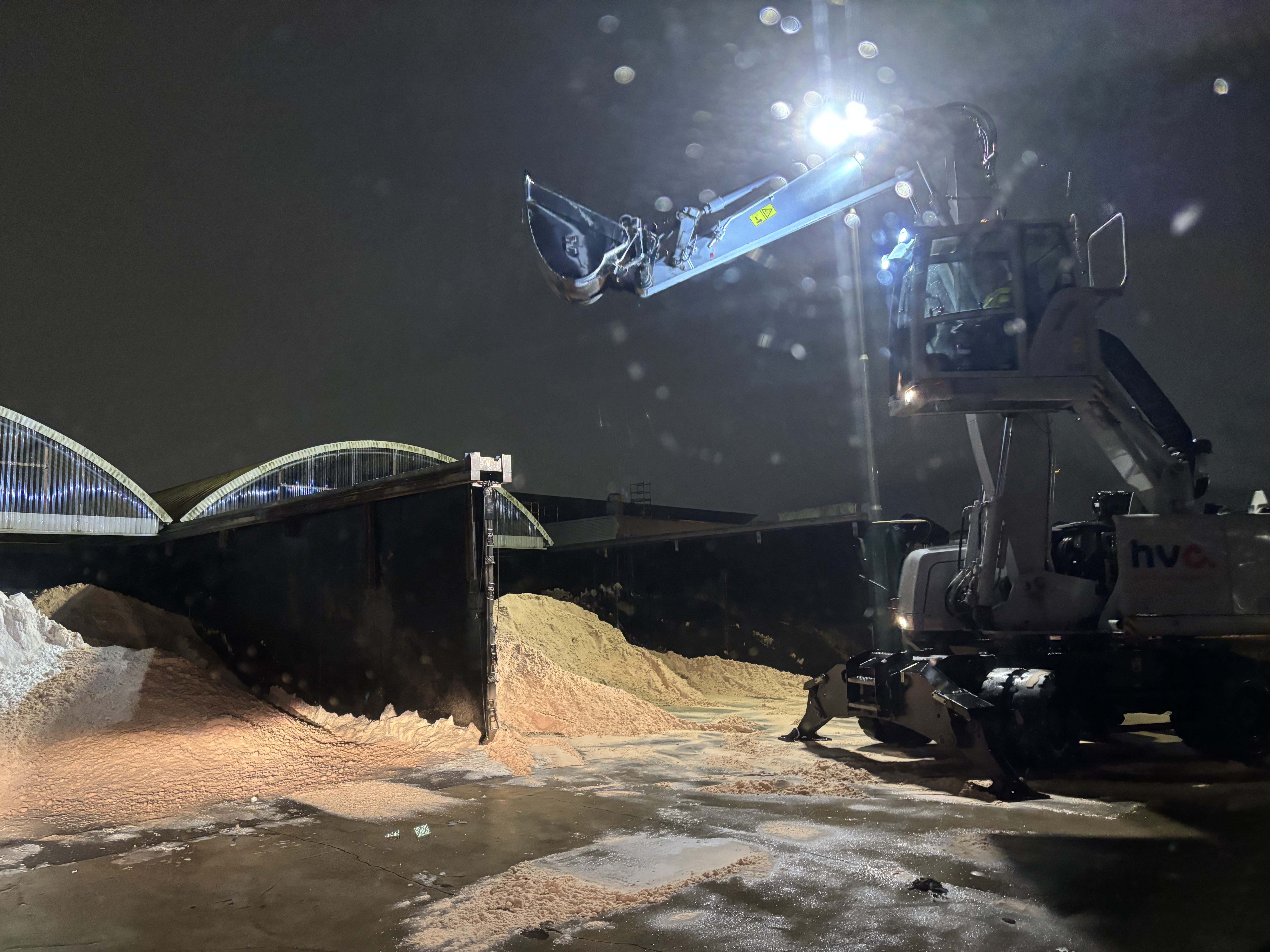 Rond elven rijden we het terrein van de HVC weer op. De vrachtwagen is een paar ton lichter en de wegen zijn een stuk veiliger. De mannen drinken allemaal nog een kop koffie of thee, terwijl de laatste administratie nog wordt gedaan. De meeste mensen al liggen te slapen, maar de hardwerkende mannen zorgen ervoor dat iedereen de volgende ochtend weer zonder glijpartij op hun bestemming aankomt.